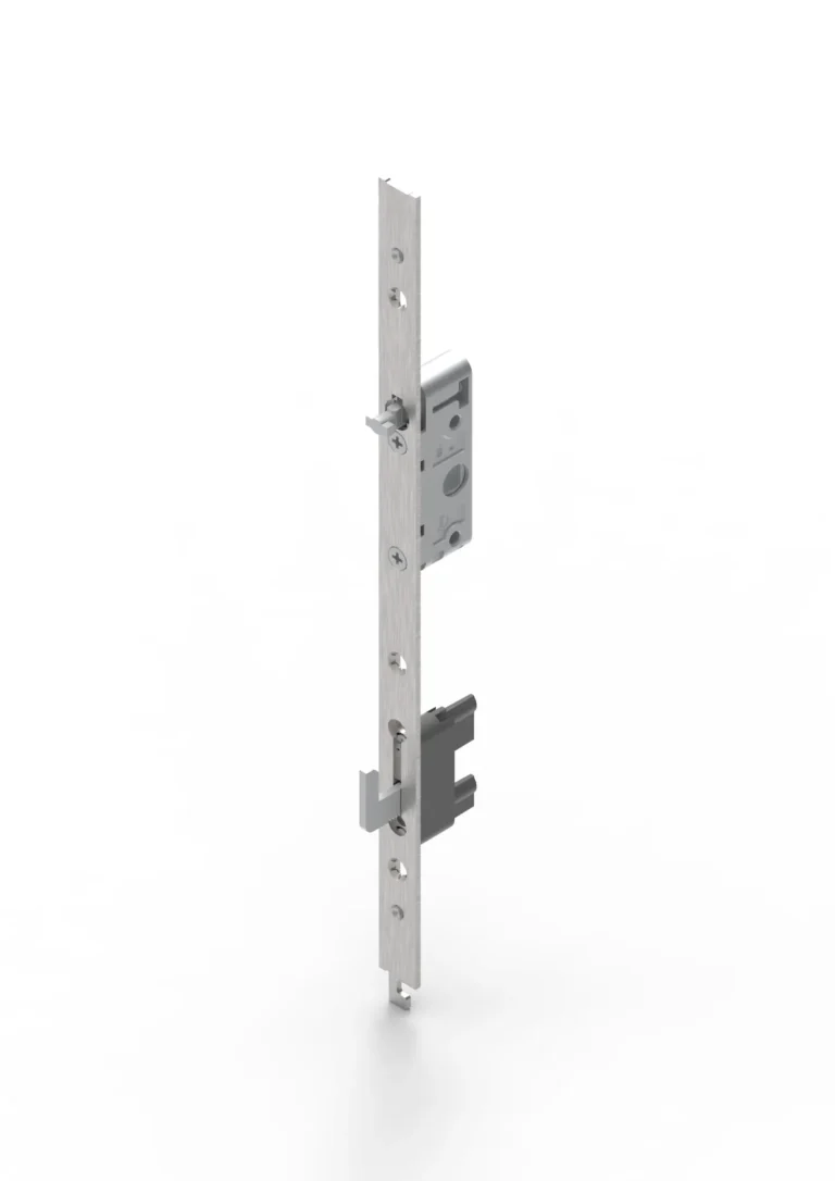 Un concept intégré : pêne central réglable, anti-fausse manœuvre, butée de fin de course ou anti-dégondage, intégrable sur la serrure.